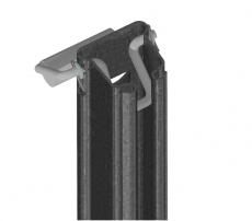Utløselig vertikal vognstopper nr. 85 skal monteres i hullene for muffeforbindelser ved den øvre enden av den vertikale profilen for å hindre at klatrevognen glir ut utilsiktet.