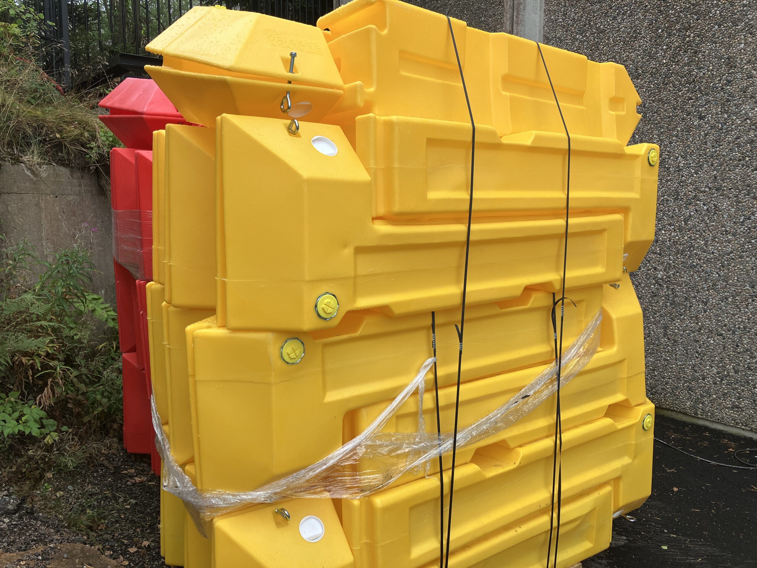 Reservedelsplugger til vektblokker ment for å fylles med vann.